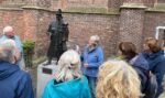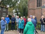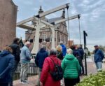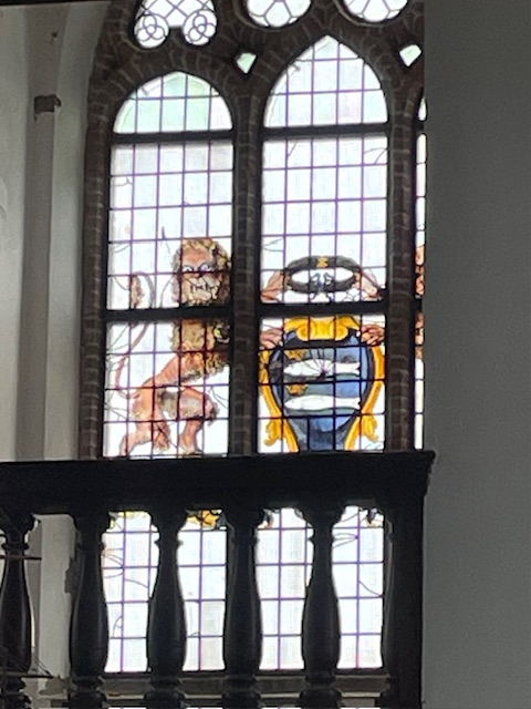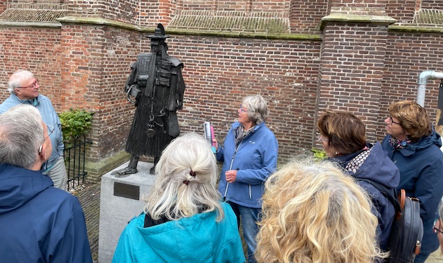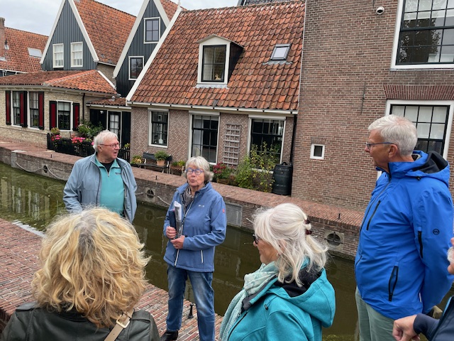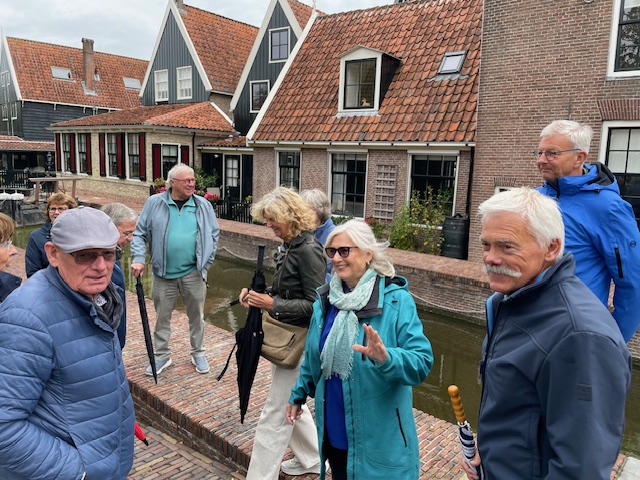 Na de heerlijke koffie met (uiteraard) gebak wachtte ons een rondleiding door het dorp door gids Nel. Omdat het middagprogramma kwam te vervallen, had zij niet alleen meer tijd het wel en wee van De Rijp en haar (vroegere) inwoners te vertellen, ook was er nu tijd beschikbaar in de Grote Kerk de gebrandschilderde- met naast Bijbelse voorstellingen onder andere de wapens van Enkhuizen, Amsterdam en Haarlem- ramen te bewonderen.